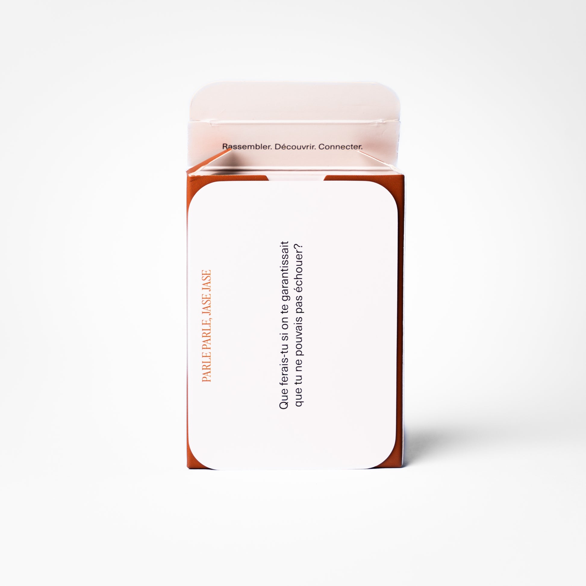 Apportez PARLE PARLE JASE JASE DE TOUTE dans un souper, un brunch ou un pique-nique pour réellement connecter avec vos proches, vos amis et votre famille.